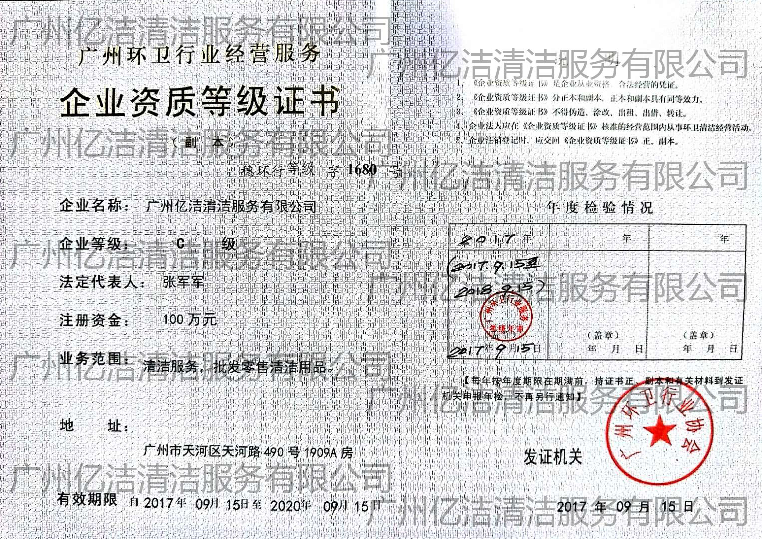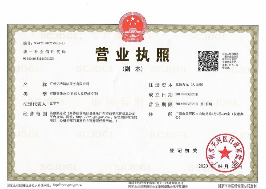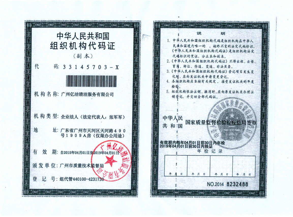 廣州億潔清潔服務(wù)有限公司是經(jīng)廣州市工商行政管理局批準成立的(注冊資本:100萬元人民幣)。具有獨立法人資質(zhì)。公司成立2015年,公司具備完善的管理體系和高素質(zhì)管理隊伍,擁有特種技術(shù)人員33名,保潔服務(wù)人員上萬名,覆蓋廣州市,能及時調(diào)配并快速投入高效運行。我們的每個員工都經(jīng)過公司的嚴格篩選,嚴格培訓(xùn),定期培訓(xùn)后持證上崗以保證服務(wù)品質(zhì),保障客戶的權(quán)利,利益,形象等不受損失。 廣州億潔清潔公司是一家設(shè)備齊全,技術(shù)強大的綜合型清潔服務(wù)公司,為客戶提供完善服務(wù)尊定了堅定的基礎(chǔ)。 司于2010年全面推行了ISO9001質(zhì)量管理體系認證和ISO14001國際環(huán)保體系認證。先后獲得廣州高層建筑外墻清洗維修作業(yè)【安全資質(zhì)證書】、【廣州環(huán)衛(wèi)企業(yè)等級證書C級資質(zhì)】、廣州疾控中心頒發(fā)的【四害消殺服務(wù)資質(zhì)證】、【空氣治理A級資質(zhì)】、中國石材協(xié)會頒發(fā)的【石材資質(zhì)B級資質(zhì)】等。 廣州億潔清潔服務(wù)有限公司致力于打造專業(yè)、實惠、靠譜的保潔服務(wù)公司,把專業(yè)的事情交給專業(yè)的我們,您放心! 億潔清潔服務(wù)項目: 廣州保潔服務(wù):新建樓宇、別墅、酒店、醫(yī)院、辦公樓、賓館、企事業(yè)單位廠房竣工后開荒及裝修后精細保潔.工程保潔服務(wù)。 廣州物業(yè)托管:為廣州市各大企事業(yè)單位、賓館、政府機關(guān)、小區(qū)物業(yè)、酒店及廠房提供專業(yè)化保潔、園林、設(shè)施維護等管理服務(wù)。 廣州高空作業(yè):高空玻璃幕...[詳情]